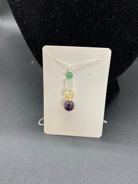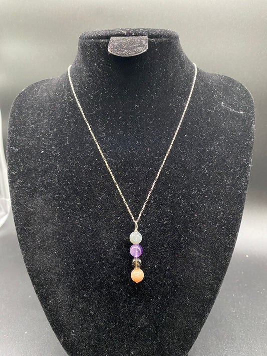 Multi Colour Baltic Amber Buoy Sterling Silver Necklace