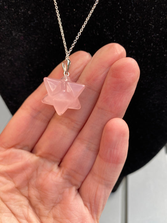 Rose Quartz Merkaba Pendant Sterling Silver Necklace