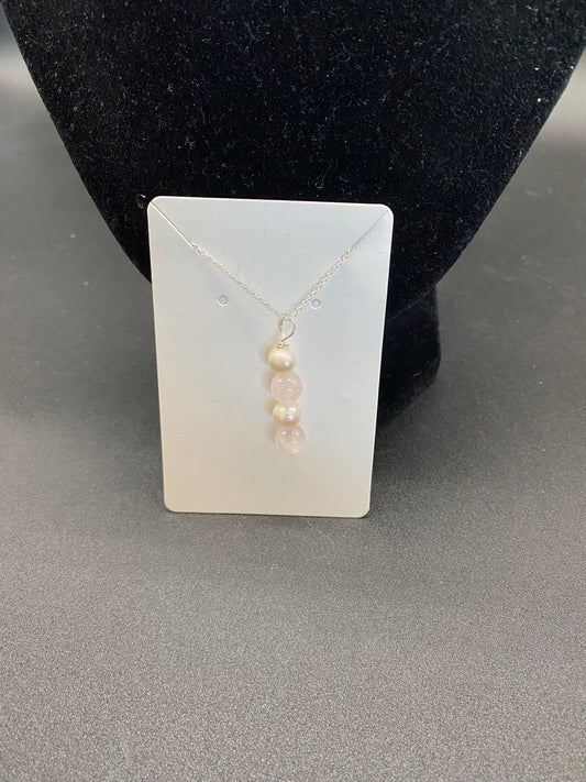 Rose Quartz & Cultured Pearl Sterling Silver Necklace