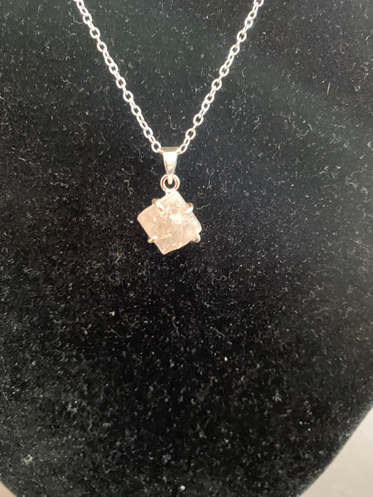Rough Rose Quartz Sterling Silver Necklace
