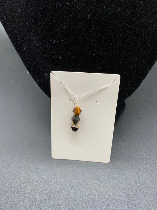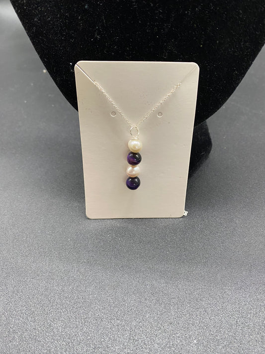 Cultured Pearl & Purple Tigers Eye Sterling Silver Necklace