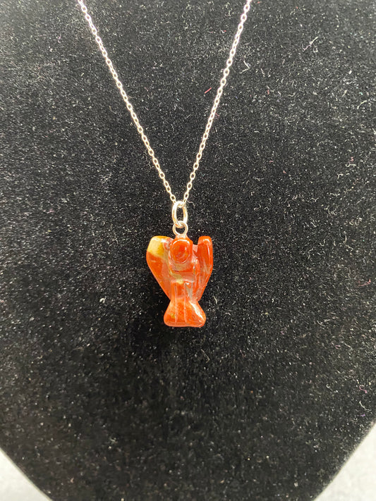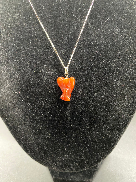Natural Carnelian Angel Pendant Hand-Carved Gemstone 925 Sterling Silver Necklace