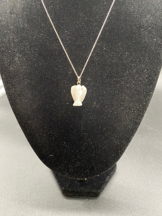 Hand-Carved White Quartz Angel Pendant in Sterling Silver | Guardian Angel Healing Crystal Necklace