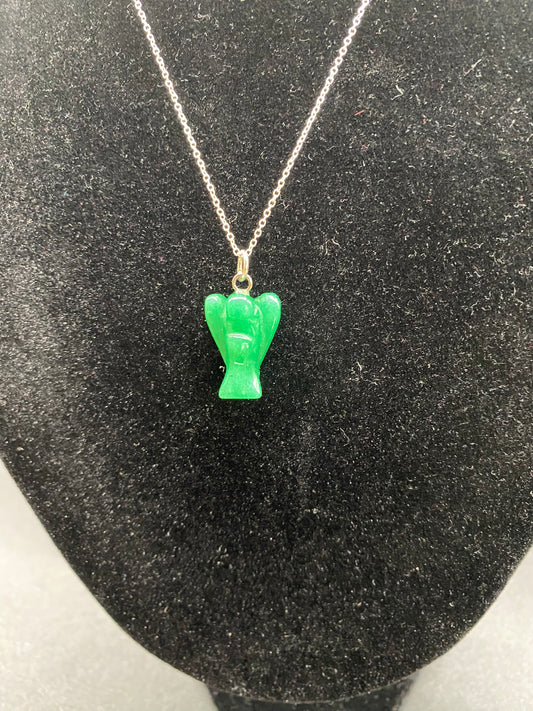 Green Aventurine Guardian Angel 925 Sterling Silver Necklace