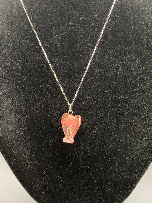 Strawberry Quartz Carved Angel Pendant on Sterling Silver Necklace