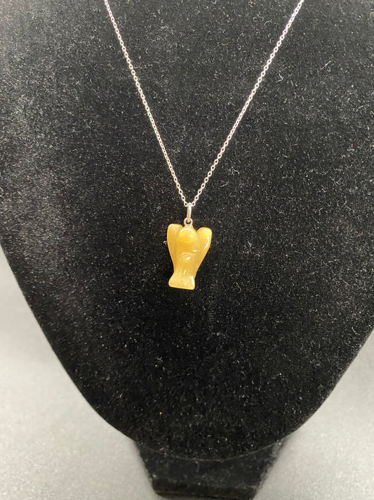 Hand-Carved Citrine Crystal Angel Pendant on Sterling Silver Chain