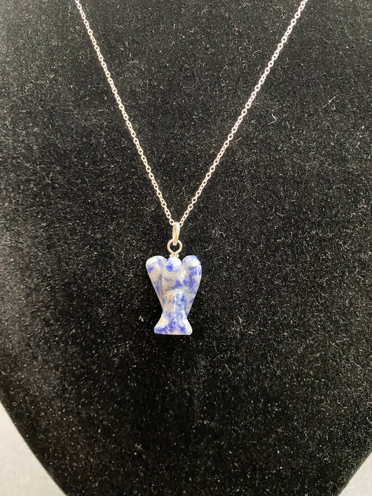 Hand-Carved Sodalite Angel Pendant on Sterling Silver – Intuition & Logic Gemstone Jewellery
