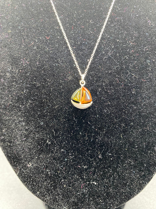Multi Coloured Baltic Amber Boat Sterling Silver Necklace