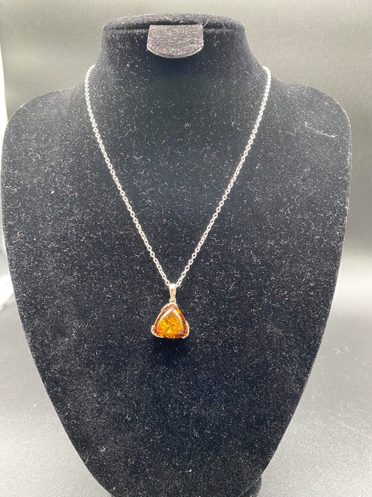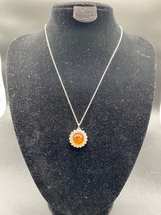 Cognac Baltic Amber Sunflower Sterling Silver Necklace