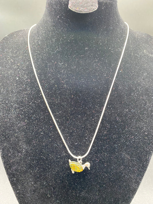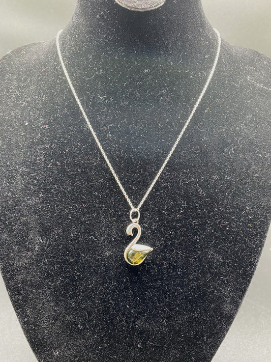 Multi Coloured Baltic Amber Kingfisher Sterling Silver Necklace