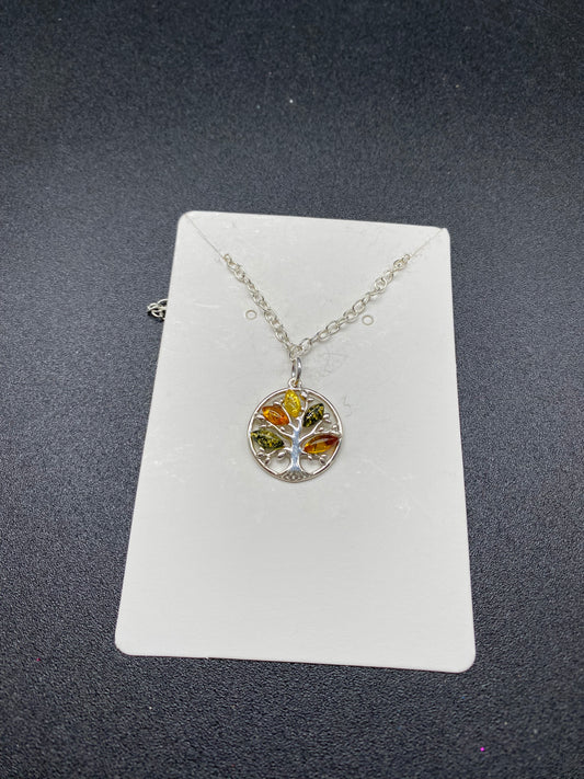 Multi Colour Baltic Amber Tree of Life Sterling Silver Bracelet
