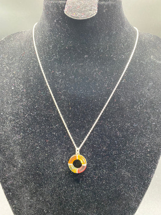 Multi Colour Baltic Amber Buoy Sterling Silver Necklace