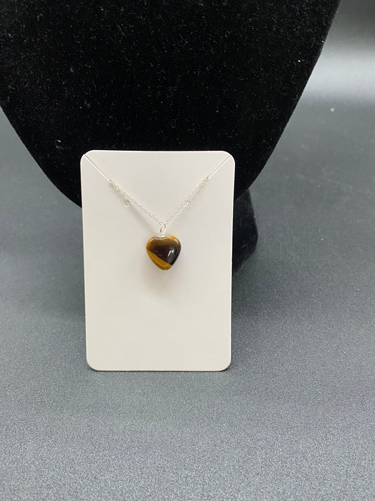 Tiger's Eye Heart Sterling Silver Necklace