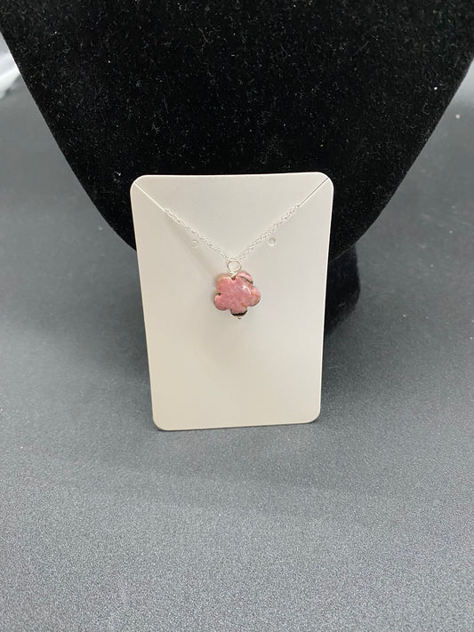 Rhodonite Flower Sterling Silver Necklace