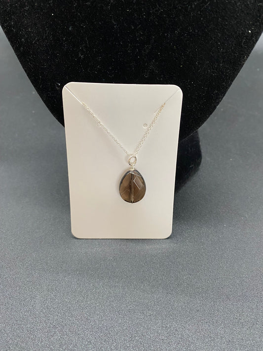 Smokey Quartz Drop Sterling Silver Necklace