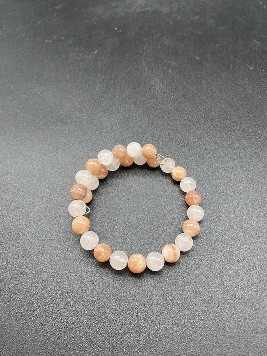 Sunstone & Rose Quartz Memory Wire Bracelet