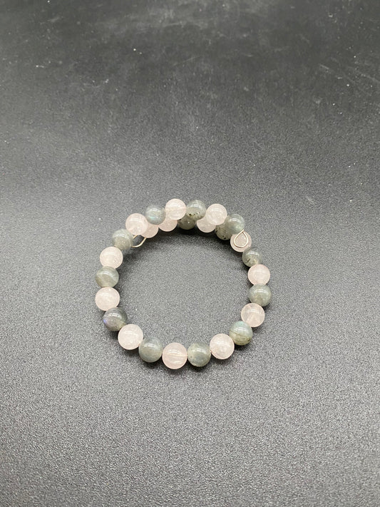 Labradorite & Rose Quartz Memory Wire Bracelet