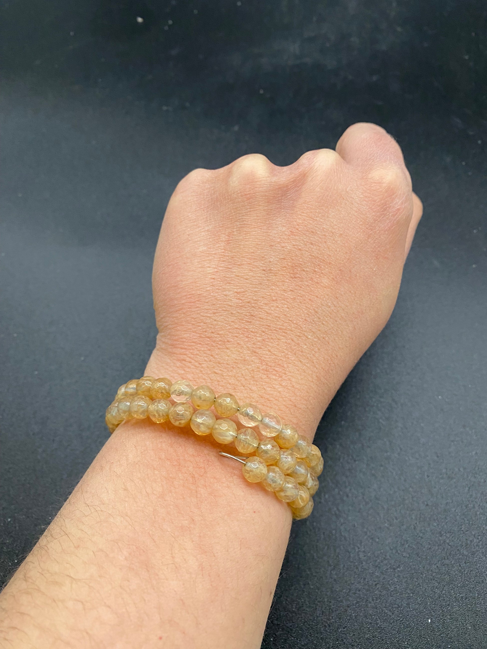 Introducing our 6mm Faceted Citrine Memory Wire Bracelet, a stunning piece of jewelry designed to enhance both your style and your well-being. Crafted with precision, each 6mm faceted citrine bead catches the light beautifully, creating a radiant display of golden hues.