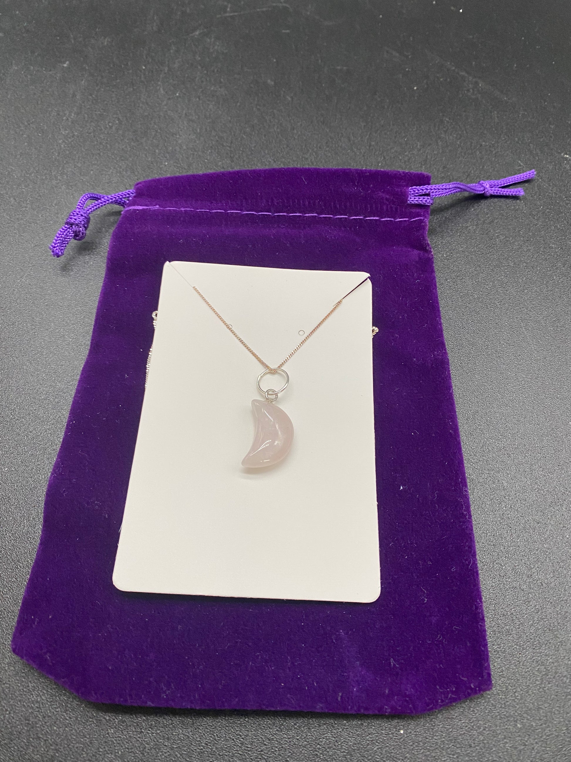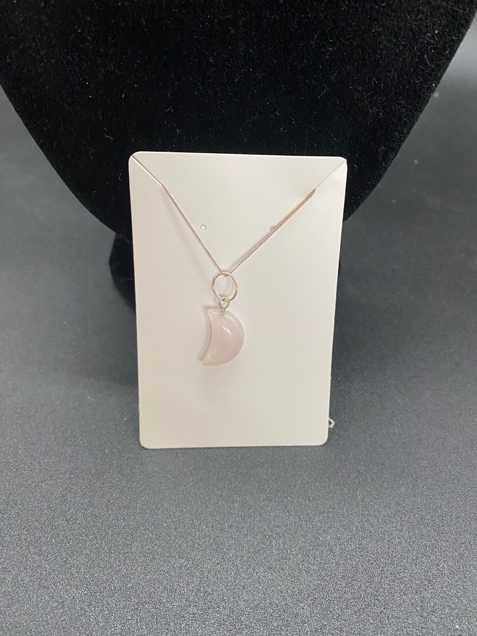 Embrace a touch of celestial serenity with our Rose Quartz Crescent Moon Necklace. This elegant piece features a genuine rose quartz gemstone, polished to a smooth, luminous finish that glows with a delicate pale pink hue. Suspended from a shimmering sterling silver chain, it’s a timeless tribute to the beauty of the night sky and the power of the heart.
