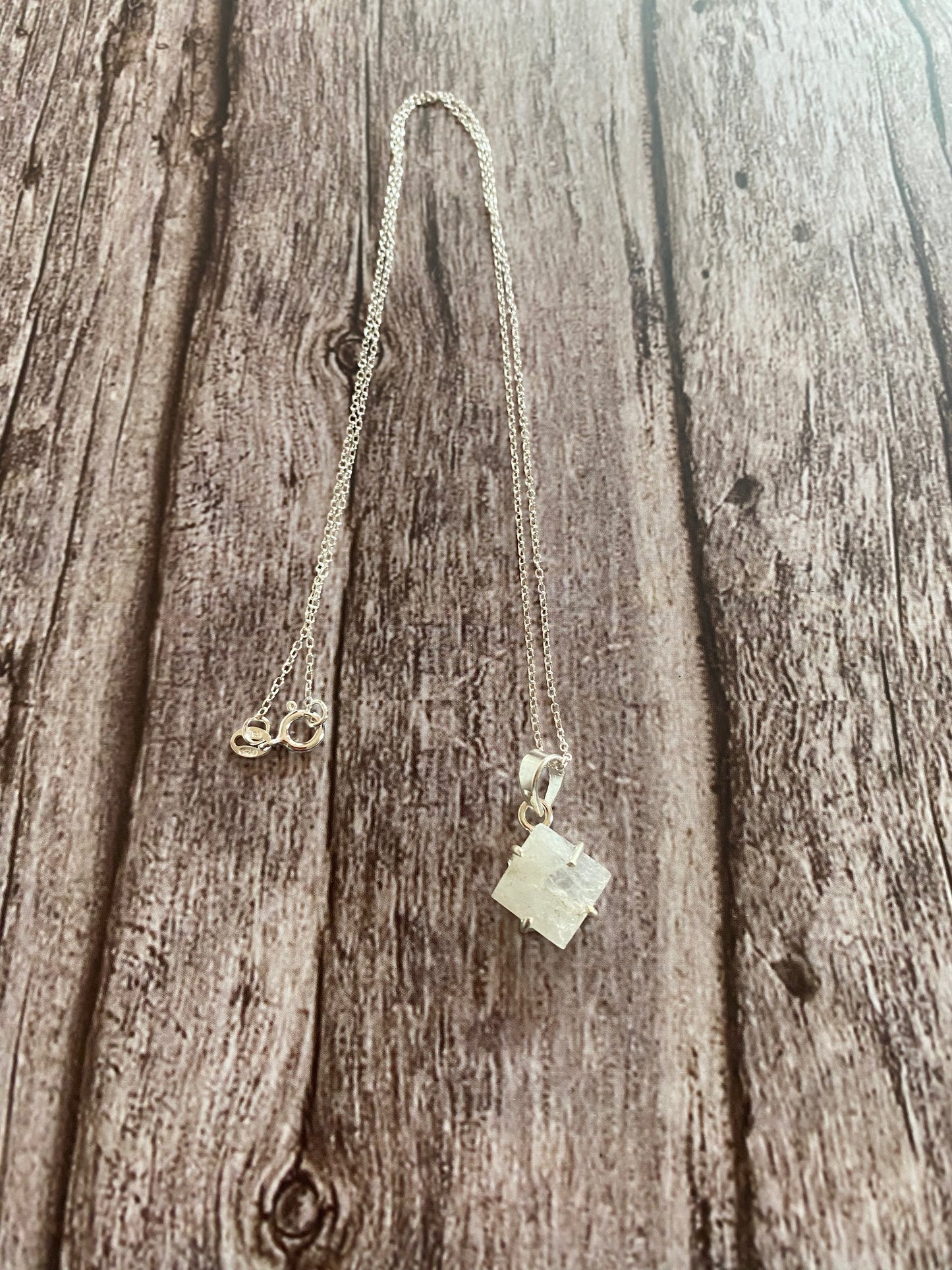 Rough Rainbow Moonstone Sterling Silver Necklace